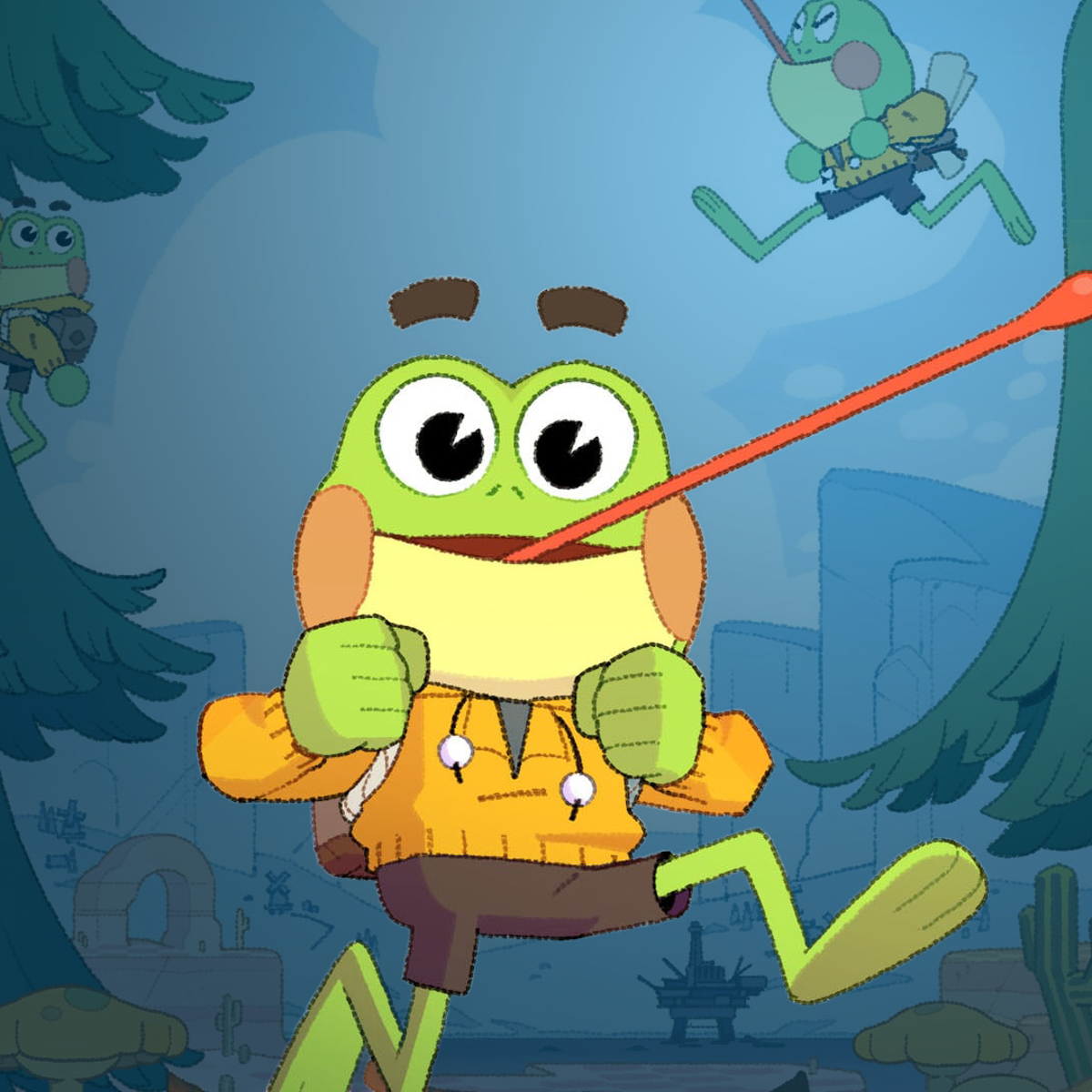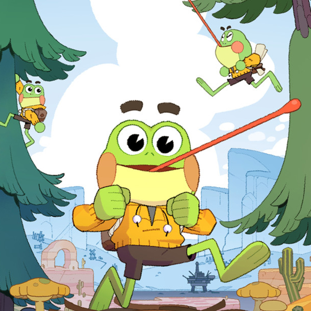 Tongue-swing, free climb, and build your own path forward in a new kind of 3D platformer! Plant veggie bounce pads, tightropes, hookshots, and much more. Find a way home through huge Desert, Ocean, and Mountain worlds and collect bugs, upgrade your backpack, and meet animal friends along the way.