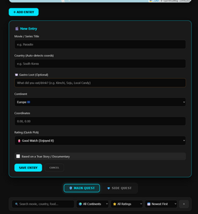 6 Conquer the World from your Sofa World Tour: Movie Edition is a gamified tracking tool designed for cinephiles who want to break free from algorithms and expand their horizons.️ The Quest Your mission is simple yet ambitious: Watch one movie from every independent nation on Earth. 193 Countries: Track your progress on an interactive world map. Stats & Badges: See your coverage grow from "…