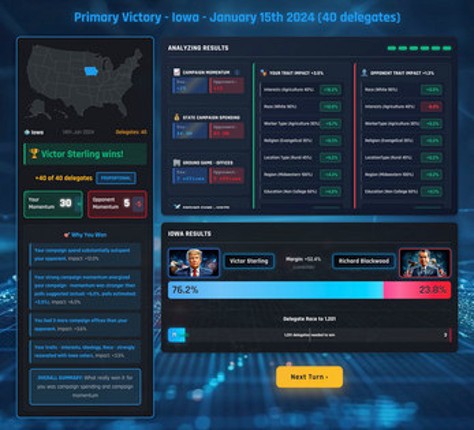 View Game9 50%Game Brain Score50% User Score 1 reviewsRun for President. Trust the Wrong Advisor. Lose Everything. You're running for president. Three advisors give you conflicting advice about every decision. One overreacts and over projects strategy outcomes. The confident one shows beautiful projections that are often wrong. The boring one is often right—but so dull you ignore them. All of your advisors genuinely believe what they're saying.…