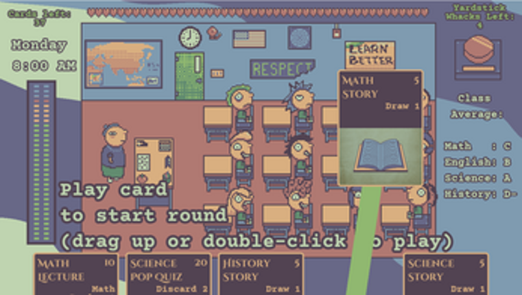 Lesson Lunacy These darn kids keep burning through substitute teachers. Can you survive a day with them? Play lesson cards to keep the kids occupied until the end of the hour, when you draw new lesson cards. Make it to Lunch (12PM Noon) to refresh your health, then make it to End of Day (5PM) to win the game! The Class Average grades act as modifiers on the cards. Subjects they're good at ta… If you enjoyed this game, see our list of games similar to Lesson Lunacy.