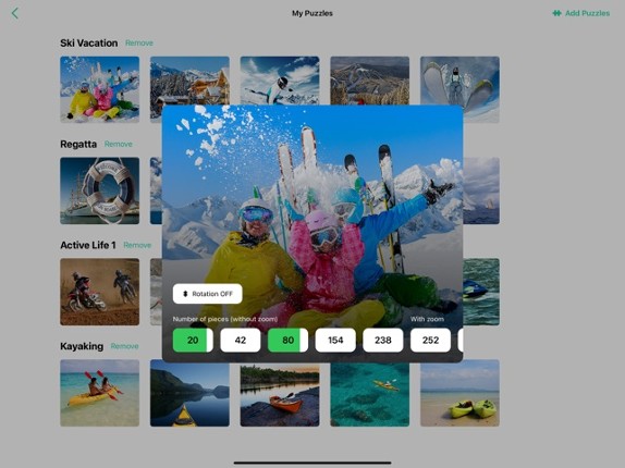 Puzzle+ is just like a real jigsaw on your iPad! Just the way you like it. More than 1000 pieces game. Ability to add your own images. We've created this app for you to make it possible to play your favorite game anywhere and anytime. It fully simulates the real puzzles and, at same time, the app uses all advantages of iPad to make the playing of your favorite game as convinient as it has ever … If you enjoyed this game, see our list of games similar to Jigsaw Puzzles Active Life.