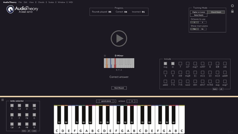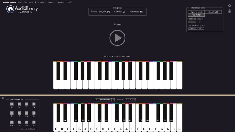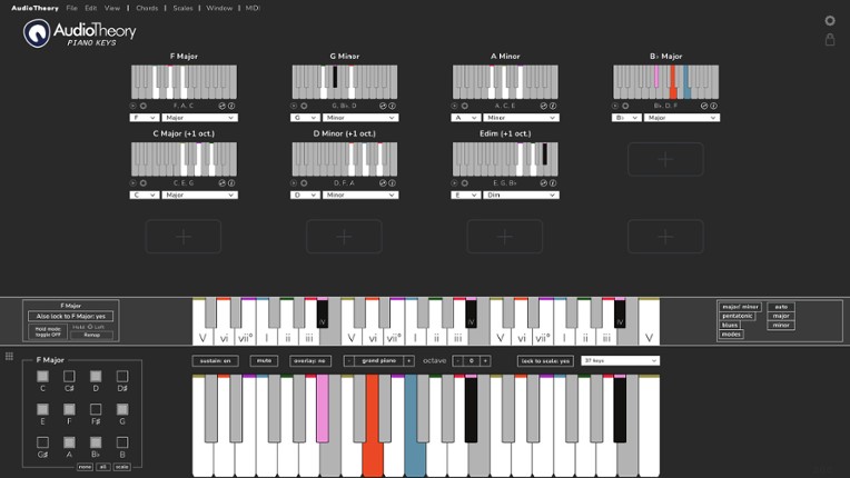 AudioTheory Piano Keys is the ultimate interactive reference tool for learning or practising the piano. Each note you play is highlighted using an innovative colour coding system and a customisable selection of chord and scale diagrams, helping you visually understand the principals of music theory. AudioTheory Piano Keys features An innovative highlighting system to quickly understand how the n… If you enjoyed this game, see our list of games similar to AudioTheory Piano Keys.
