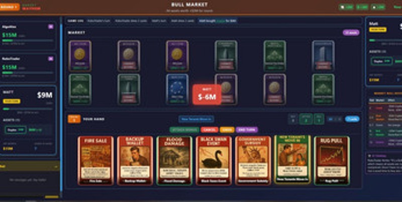 2 View Game50%Game Brain Score50% User Score 1 reviewsBuy assets. Manipulate markets. Trigger crashes. Survive the chaos. 30–45 minutes3–5 players (AI players if you want to play solo!)Browser based – no install Why Play? • Brutal but simple turn structure • Big swings (booms, crashes, bailouts) • Real financial themes with satirical flavor for a real economy vibe • Plays like Jackbox — everyone joins on their own device This is a fully pl…