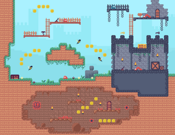 Simple 8x8 platformer with 3 different autotile sets: Grass, brick, cave. Possibilities for building are endless, and when you add all other accesories like levers, buttons, boxes, coins.... Detailed account of all the accesories is down below.Tiles: Autotile sets - grass, brick, cave Interactable objects - chest, doors, levers, buttons, push pads, pushbox(small and big), ladder... Collectible ite… If you enjoyed this game, see our list of games similar to Platformer with 3 autotile sets.