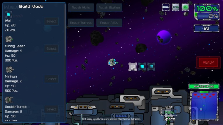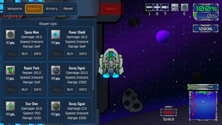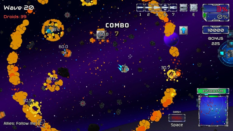 8 Enfora Star station is being overrun! Pilot your spacecraft and deploy defenses to survive droid swarms - but every purchase costs precious score points. Will you risk everything for maximum points or play it safe? Master the ultimate arcade challenge!