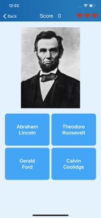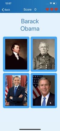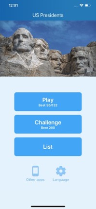 This app is perfect for learning the 46 presidents of the United States of America or for testing your knowledge. Several game modes are available: - Quiz: the point of the game is to get as many correct answers as possible, with 3 wrong answers allowed. -Challenge: you have two minutes to guess a maximum of 45 presidents. - List: you can review and learn the 46 presidents of USA. Will y… If you enjoyed this game, see our list of games similar to Presidents of the USA - quiz.