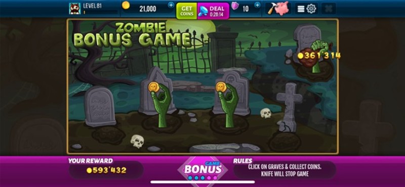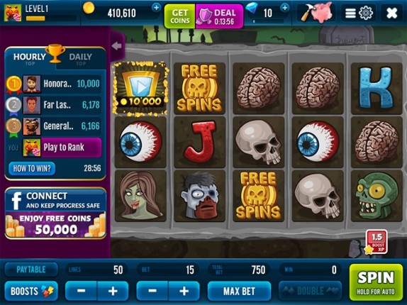 Play Free Zombie Slots game now with Huge Payouts! Enjoy the world’s best mobile slot machine. Spin & get Mega Wins! Receive daily rewards, huge bonuses, and $400,000 WELCOME COINS! Top Features of Free Slot Machine - RISK game to DOUBLE UP your WINS. - Daily Quests & Achievements for you to complete and get HUGE casino bonuses! - Massive jackpot all users and chance to win TRILLIONS of … If you enjoyed this game, see our list of games similar to Zombie Slots Great Casino Game.