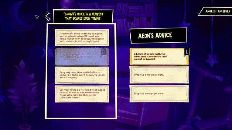 3 Holy DeadlineA narrative experience about gods, fate, and divine paperwork. You are Aeon, son of Yahweh, freshly resurrected after a short (and possibly illegal) holyday on Earth. Now you’re back in Heavenly Office, stuck doing celestial legal work for a week. Your first task is to handle the divine divorce of Adam and Eve. Your only retreat is a bizarre, shifting bar at the edge of Heaven. B…
