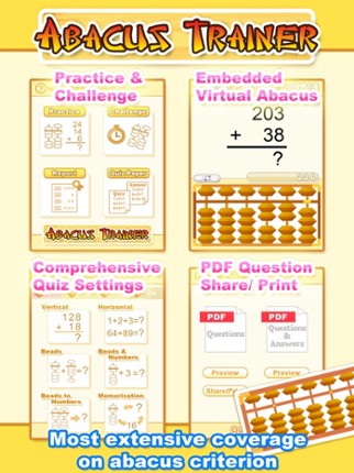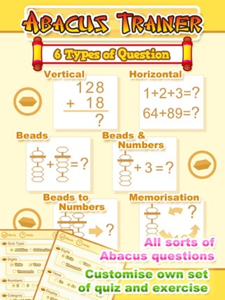 Abacus Trainer is a question generator made in accord with the abacus skills acquired in addition and subtraction. It provides a whole range of options that can be flexibly selected to fit the drilling needs. The immense pool and combination of questions enhance the learning interest. Exercises can be focused on each four categories of addition and subtraction. Abacus training ranges from knowled… If you enjoyed this game, see our list of games similar to Abacus Trainer.