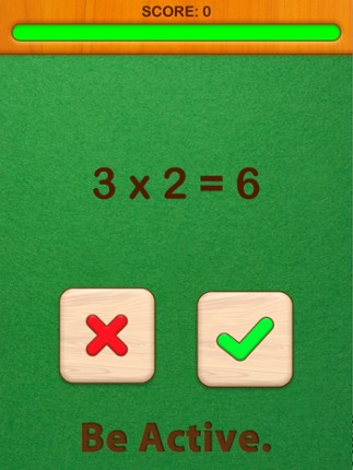 Speed math to boost your brain power. The rules are simple: See the equation (i.e. "1+2=3") and tap if it is RIGHT or WRONG. Players have literally a second to answer the question. Game is over if player run out of time or answer incorrectly. The questions get progressively hard as more questions appears. 4 GAME MODES: ------------------------------ 1) Addition 2) Subtraction 3) Multiplicati… If you enjoyed this game, see our list of games similar to Active Smart Brain Checkers.