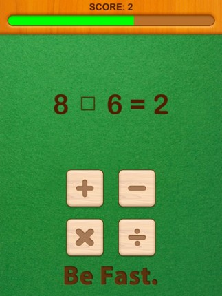 Speed math to boost your brain power. The rules are simple: Tap the correct operator that will make the equation true. Players have literally a few second to answer the question. Game is over if player run out of time or answer incorrectly. The questions get progressively hard as more questions appears. 4 GAME DIFFICULTY: ------------------------------ 1) Basic 2) Easy 3) Medium 4) Hard If you enjoyed this game, see our list of games similar to Active Smart Brain Operators.