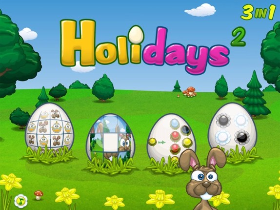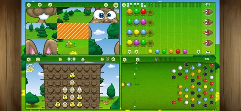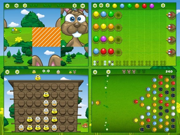 Holidays 2: Four festive educational games to stimulate memory, concentration and cognitive skills in bright children aged 4-7. The 4 games in this great spring app are: • CONNECT FOUR: Play against either the computer or a friend. • SLIDE PUZZLE: Put the pieces in the right order again. Choose 3x3, 5x3 or 5x4 puzzle pieces. • BUBBLE SHOOTER: Bring together 3 or more presents of the same color. •… If you enjoyed this game, see our list of games similar to Holidays 2 - 4 Easter Games.
