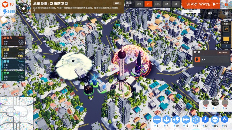 Snowmen are attacking Shanghai, and you must hold the line on a battlefield that changes every run. This is a single-player roguelite tower defense game built around map variation, run-building, and defensive adaptation. In each run, the map generates a different identity, including base position, frontline structure, pressure lanes, and defensive space. You must read the terrain, place towers ca… If you enjoyed this game, see our list of games similar to 城市塔防-City Tower Defence.
