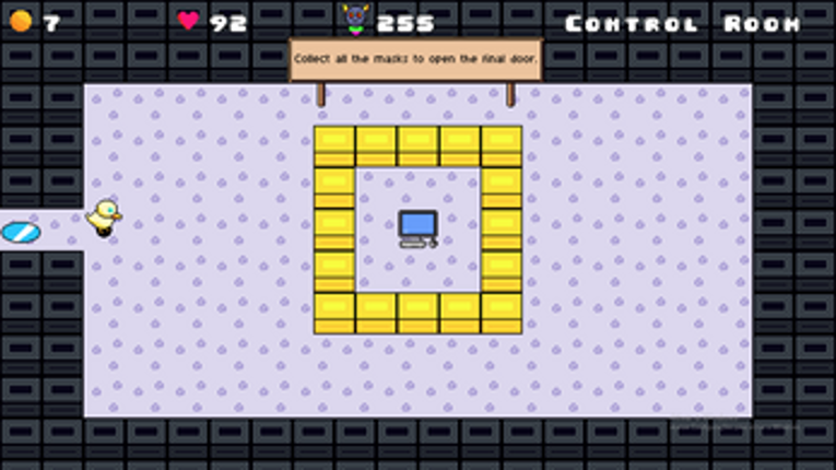 10 Collect coins to increase the power of your bombs. Defeat creatures to earn extra lives. Collect masks; only with them can you open the final door. Golden eggs are extremely powerful. Lakes allow you to advance to the next level or return to the previous one. Game Controls Movement – W, A, S, D or the arrow keys Attack – Spacebar Mission / Inventory – I How it was made Art: All g…
