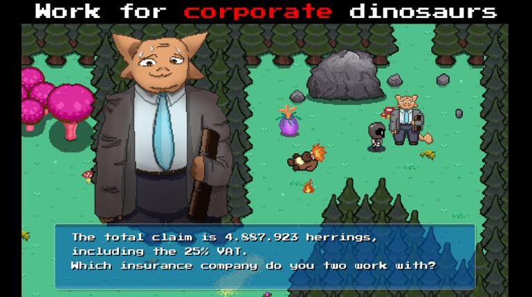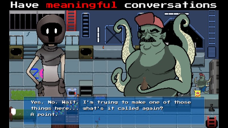 Explore the planet Roskis, meet hippie robots and corporate dinosaurs, find your runaway animals, battle against a pineapple pizza, and save the planet from... OH NO! If you enjoyed this game, see our list of games similar to Roskis: A Boozy Beginning.