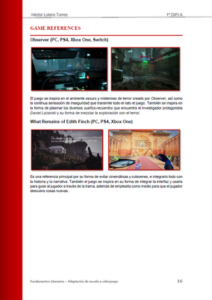 6 A game design document modifying the original design of the 1997 adventure game The Curse of Monkey Island. It briefly analyzes all the elements of the original game: characters, puzzles, narrative... It adds new puzzles to the original concept. This document is only meant to be a representation of abilities. The software used: Microsoft Word. *The document is written in Spanish.*