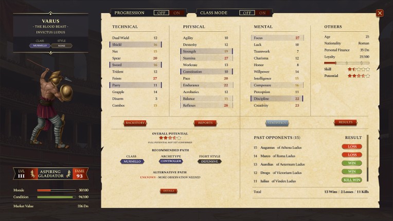 You are the dominus of a rising gladiator school in a world ruled by steel and spectacle. Gladiatorum: Sacramentum is a deep, complex simulation where every scar tells a story, every decision echoes through blood, and where you forge the next legends of the arena. This isn’t just about the fight. It’s about survival, loyalty, and power. Your choices shape not only the fate of gladiators, but th… If you enjoyed this game, see our list of games similar to Gladiatorum: Sacramentum.