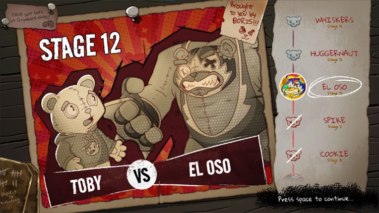 7 73%Game Brain Scoregameplay, graphicsgrinding, music91% User Score 32 reviewsBearly Brave is a 2D roguelike deck-building game set in a deceptively charming toy shop, where the cutest teddy bears come to life each night to fight in a no-holds-barred tournament that determines their placement on the shelves, and thus their likeness to be taken to their forever home.