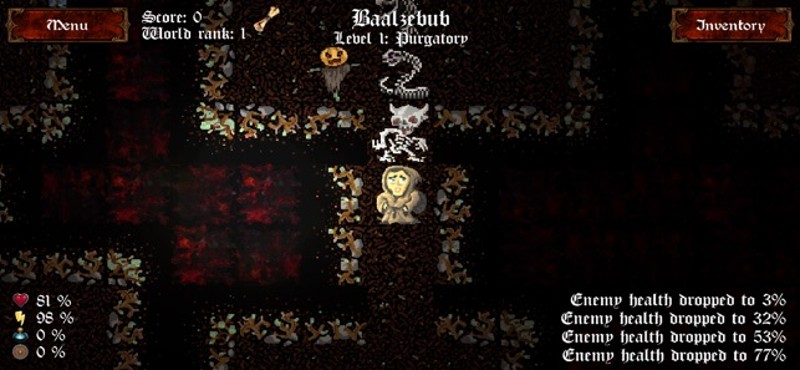 8 48%Game Brain Score48% User Score 1 reviewsYou do not remember how this happened - all of a sudden you found yourself in Hell! Make your way out through the 14 levels of randomly generated infernal dungeon, get keys, food, weapons and other items from dead monsters, overcome bosses and escape that horror! Take a chance to beat the high score in the global Hall of Fame. This is a survival turn-based dungeon crawler game resembling the clas…