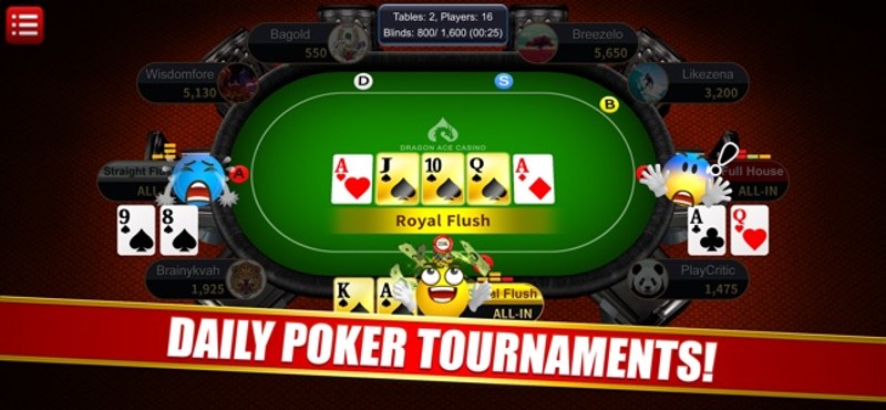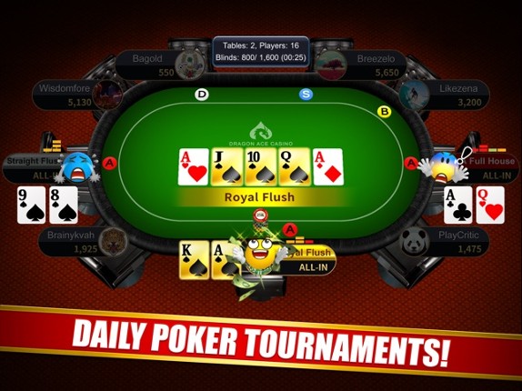 Welcome to Dragon Ace Casino! Baccarat, Blackjack, Texas Hold'em Poker, and Slots, all for free on your pc!■ The must-have social game for all casino pros! Enjoy a real casino experience! □ Are you a high roller or pro-casino player? Enjoy 24/7 live competitive Baccarat, Blackjack, Texas Hold'em Poker, and Slots! ■ Want to be a champion? Play daily Mass Baccarat and Texas Hold'em Tournaments! □… If you enjoyed this game, see our list of games similar to Dragon Ace Casino.