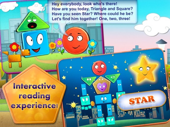 ����> Learn shapes, colors, numbers and more in this fun, interactive animated adventure! ����> Your kids will never forget their shapes and colors after playing this story game! ����> 11 interactive learning games inside, including puzzles, matching games, counting & more! In this rich and interactive educational game, everything is alive - touch any scenery object or any of the leading chara… If you enjoyed this game, see our list of games similar to Friendly Shapes Storybook.
