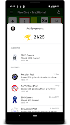 1 92%Game Brain Scoregraphics, gameplaymonetization, stability92% User Score 4,691 reviewsIf you like YAHTZEE, you'll love Five Dice.
