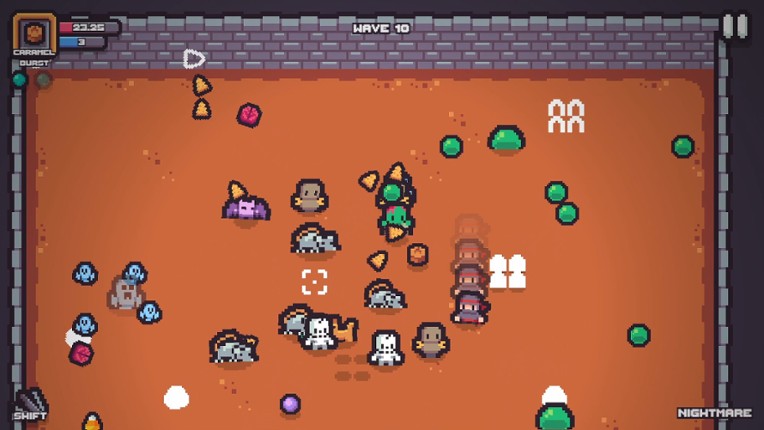 Rogueween is a roguelike, bullet hell, top-down arena shooter game where candies grant shooting abilities, treats provide power-ups, tricks offer extra challenges, and you battle waves of Halloween-themed enemies in this action-packed adventure! This is the demo version. The full version will be released on Steam. Wishlist it here: https://store.steampowered.com/app/3034150/Rogueween/ If you enjoyed this game, see our list of games similar to Rogueween.