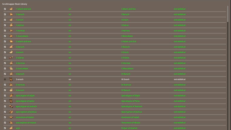 Scrollmapper is an innovative scripture analysis tool designed to create detailed cross-references for both canonical and apocryphal scriptures. It's primary purpose is to connect the canonical scriptures to the lost books such as the Book of Enoch. Built using Godot game engine, Scrollmapper offers a visually appealing and intuitive interface for exploring and analyzing scripture relationships… If you enjoyed this game, see our list of games similar to Scrollmapper.