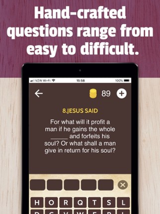 Bible Quiz 2025 - Word Games: The Ultimate Bible Trivia Challenge Are you ready to test and expand your knowledge of the Bible? Bible Quiz 2025 - Word Games is an exciting and educational trivia game that challenges you to guess answers based on engaging picture clues. Whether you are a devoted believer, a Bible scholar, or just someone looking to learn more about the scriptures, this game will p… If you enjoyed this game, see our list of games similar to Bible Quiz 2025 - Word Games.