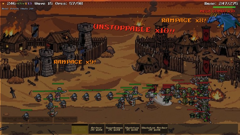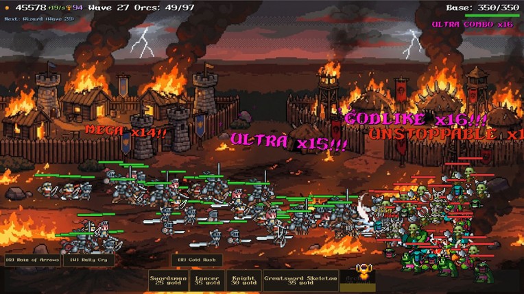 Humans vs Orcs is a side-scrolling incremental strategy game where you build and command an ever-growing army against relentless waves of orcs, monsters, and dragons. BUILD YOUR ARMY Recruit from 15 unique human units — from humble swordsmen and archers to powerful wizards, werewolves, and werebears. Each unit has distinct abilities like blocking, charging, cleaving, healing, and li… If you enjoyed this game, see our list of games similar to Humans Vs Orcs.