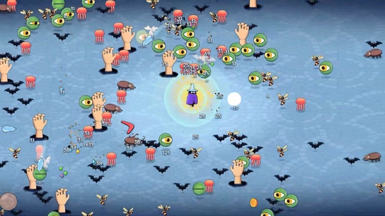 STRIKEVOID is a fast-paced 2D bullet hell where the magical world descends into pure chaos. You take on the role of a mysterious mage in a purple cloak, battling waves of mythical creatures and colossal bosses. With over 15 spells to master, every battle can unfold differently. Combine skills to adapt for new enemies. More than 10 distinct enemies and over 5 unique bosses await — each with their o… If you enjoyed this game, see our list of games similar to STRIKEVOID.