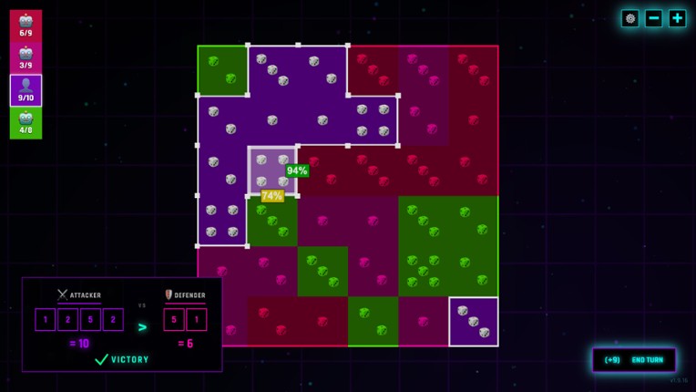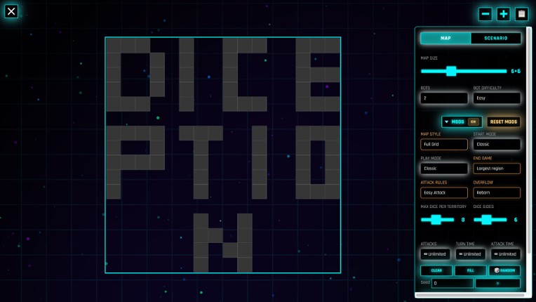 Diception is a fast, minimalistic conquest game. Inspired by classics like Risk and DiceWars, it features quick turn-based matches, an extensive campaign, a built-in editor, and local multiplayer for up to 8 players. By replacing the classic isometric view with an optimized 2D Grid View, the game offers seamless Mouse, Keyboard, and Gamepad support for a lightning-fast experience. Key Features:… If you enjoyed this game, see our list of games similar to DICEPTION.