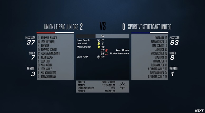The gameBoeckham's Football Manager is an old-school management game in which you are in charge of a soccer team. To be successful, you need to manage your players, buy some cheap and sell some with profit, and care for them when they get into trouble. Build your stadium and expand the facilities. Negotiate with sponsors to finance all of the above. But your team is not the most important part … If you enjoyed this game, see our list of games similar to Boeckham's Football Manager.