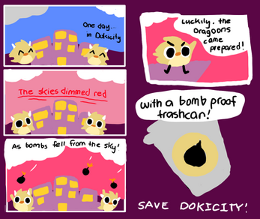 Bombs are falling from the sky! Help the dragoons save Doki City from exploding! You need to carry the bomb from the start to the bomb-proof trashcan to protect the city. Better be fast and avoid hazards on the way, or else... BOOM! Made for in 2 weeks the Doki Jam! Controls Movement : ZQSD / AWSD / Arrows Pause menu : TAB Throw the bomb : SPACE Drop the bomb : E Intro comics We … If you enjoyed this game, see our list of games similar to Doki-Doki Boom!.