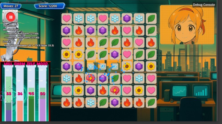 Welcome to the Algorithm. It Loves You. Waifu Pilled is a satirical match-3 dating sim fused with a visual novel — set in a glitchy vaporwave nightmare where love is transactional and self-worth is gamified. Climb the corporate waifu ladder by crushing tiles, navigating reputation systems, and forming alliances with synthetic goddesses of influence. Every choice you make echoes through your soci… If you enjoyed this game, see our list of games similar to Waifu Pilled.