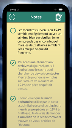 Anna Gélis, collaborator of Thomas Loreau, investigates the recent disappearance of the latter. Discover from the messages sent from the investigator's phone the dark secrets that surround Malfosse for several hundred years. But dare you really get off when the alleged killer will call you? ... Experience from the inside a dark investigation that will allow you to find the killer responsible for … If you enjoyed this game, see our list of games similar to Malfosse, l’Affaire 2019.