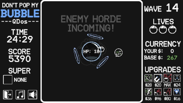 DEFEND YOUR BUBBLE!Inspired by classic arcade-style gameplay, defend all that is bubble-like from the pointy bad guys who want to pop you! Dash, shoot, and defend both yourself and your base from being popped by infinite onslaughts of thumbtacks, pencils, sewing needles, and more! UPGRADE YOUR OFFENSE!With 8 ways to upgrade you and your base bubble, alongside the help of 6 unique and game-cha… If you enjoyed this game, see our list of games similar to Don't Pop My Bubble.