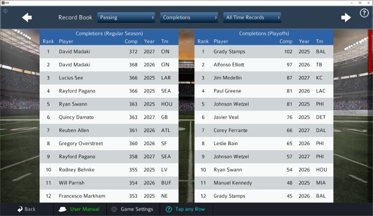 9 68%Game Brain Scorestorygraphics, stability95% User Score 22 reviewsThis game-breaking version of Pro Strategy Football changes everything! Animation now has real jersey numbers! Shoulder numbers are optional, to reflect real jerseys throughout history, and the shoulder numbers and jersey numbers can be colored differently! Accurate and realistic formations by era! HUGE jump in realism and immersiveness! Can now manually trade players and draft picks…