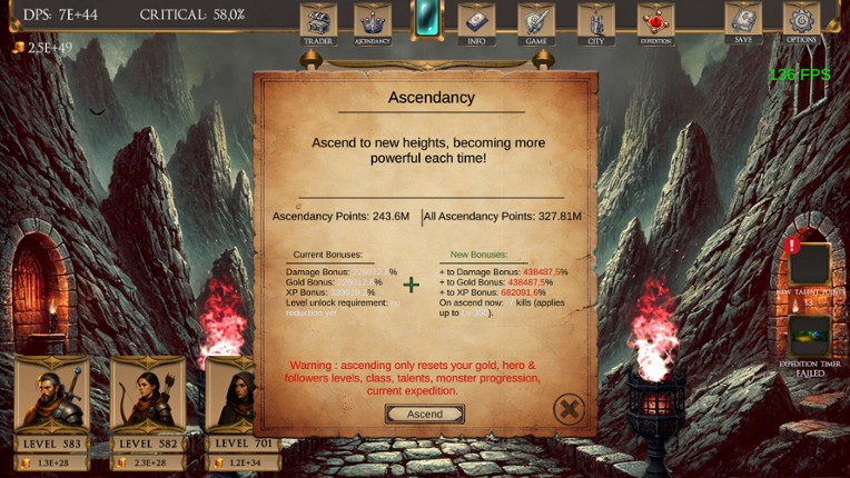 5 56%Game Brain Scoremonetizationgameplay, music74% User Score 27 reviewsFantasy Clicker Raise three heroes, slay fantasy monsters, and grow a city that keeps earning gold while you’re away. Fight, craft, level-up, ascend, repeat! Features Variety of different monsters and bosses to slay! Fantasy inspired levels with vibrant colors or damp dark caves. Level up and equip your 3 heroes to deal more damage and slay enemies faster. Offline progress: gain g…