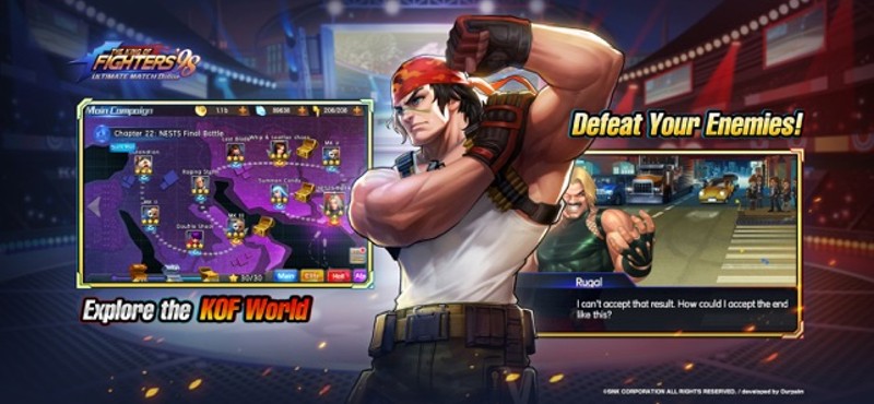 8 63%Game Brain Score63% User Score 162 reviewsThe battle fighting game "King of Fighters" is on the mobile phone with a brand new look! There are more than 150 fighters available and a massive number of NEO next-generation combat modes! Come and pursuit your victory with the strongest team compose with 6 fighters and 3 aid fighter! Login now and you can get the super popular fighter - Instinct Iori for free! ==Key Features == DECK BUILDING …