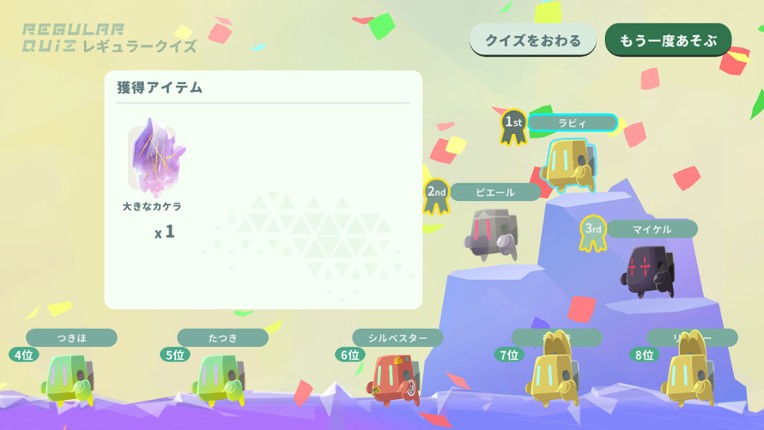 — Unraveling this planet, the quiz is a quest. Laby and the Mysterious Planet can be played anytime and with anyone! A quiz game where up to 8 players can play together to win. On a mysterious planet where "piece of quiz" are floating, you and your robot buddy "Laby" will try to restore the liveliness of the planet through quizzes! Play with anyone, anytime.The game is mult… If you enjoyed this game, see our list of games similar to みんなでクイズ ラビィとふしぎな惑星.