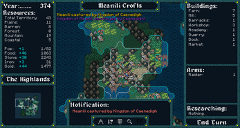 This is an active-time based strategy game inspired by two of my favorite old school strategy games, Civilization 1 and Age of Empires. This game is fully playable, but is in ALPHA, so there will be bugs, but it is winnable. Please let me know if you find any issues and I would love to hear your feedback in the forum so that I can make it better, thanks! See "how_to_play.txt" for game instructio… If you enjoyed this game, see our list of games similar to Highland Siege.
