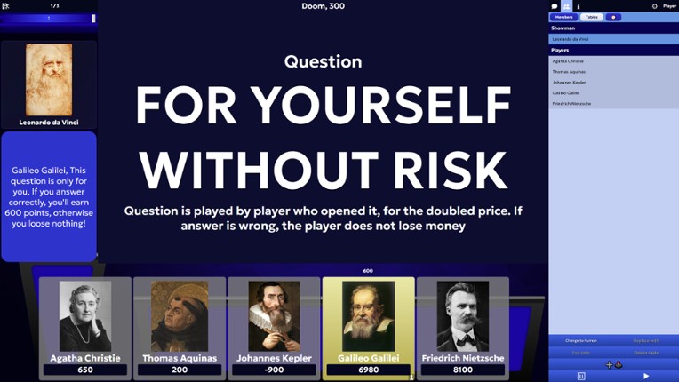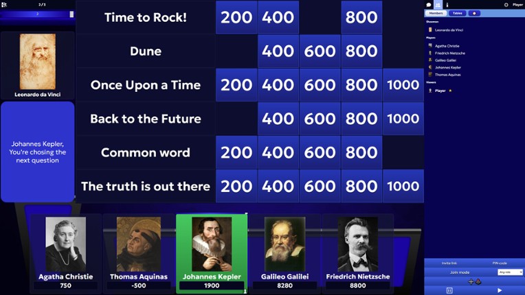 8 88%Game Brain Scoregameplay, humorgraphics, stability88% User Score 217 reviewsSIGame is a classical intellectual game (first released in 2002) that lets you test your knowledge in a competitive atmosphere. In this game, you can challenge both experienced players and smart bots, showcasing your expertise across various fields. Key Features: Diverse Thematic Packs: Play quizzes on general knowledge, books, movies, cartoons and anime, music, and video games. Create Your Own…