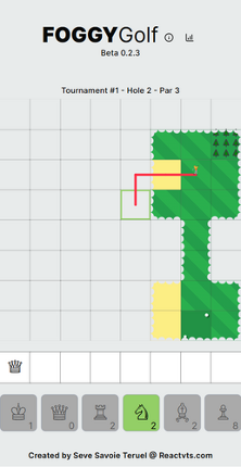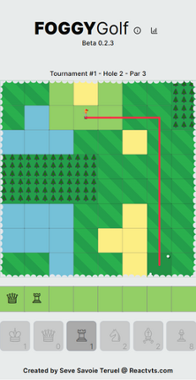 3 Find the hole in this fog-filled golf course in as few strokes as possible. Your golf clubs are chess pieces and they determine your shoot path and distance. Also, different terrains will have different movement effects. Click on a square on the map, if you can reach it with your available clubs, a line will appear and the usable clubs will light up. Some shots will be possible with multiple club…
