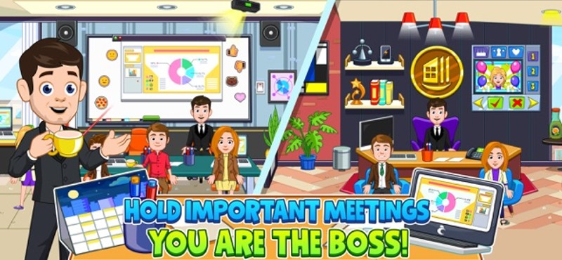 7 87%Game Brain Score87% User Score 2,204 reviewsDo you want to discover what it is like to be an adult and work at an office? My City : Office is where you get to create your own office adventure. with one house that belongs to the Boss and four awesome locations to work at, Monday morning has never been so exciting! Hold important meetings, Who will get the employee of the month award? Would you like to work at the television station or perhap…