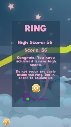 In this game you control a ring through which the cable passes. Do not allow the ring to contact the cable passing through it. Tap in order to bounce up. Have fun! WEBSITE: https://retoxin.com TWITTER: https://twitter.com/RetoxinGamesFACEBOOK: https://www.facebook.com/RetoxinGamesINSTAGRAM: https://www.instagram.com/RetoxinGames If you enjoyed this game, see our list of games similar to Ring.