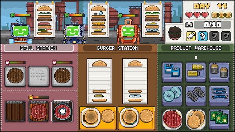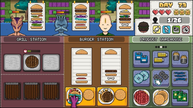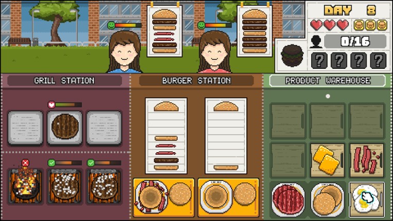 2 Make Burgers: GRILL UP is a dynamic, fast-paced cooking game all about crafting burgers, staying focused, and surviving culinary chaos. Every new day brings a fresh challenge: watch the timers, grill patties, assemble orders by recipe, and don’t let your customers leave hungry! You’ll tackle 75 unique level-days, over 1000 burger combinations, and increasingly unusual orders in every new city…