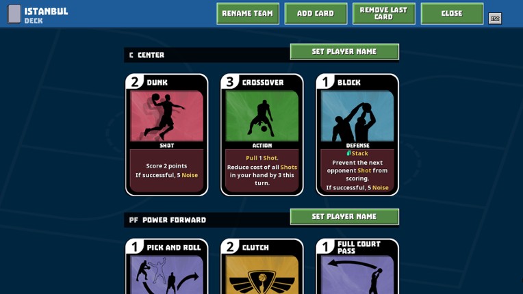 1 86%Game Brain Scorehumor, storygameplay, graphics86% User Score 85 reviewsA basketball-themed Roguelike Deckbuilder. Each player in a basketball team is represented by 3 skill cards like 2 and 3 point shots, rebounds, steals, blocks, assists, crossover moves. There are also coaching cards like timeouts, challenge or substitution. The cards are played during a match with a goal of outscoring your opponent. You can play an elimination tournament, or a season where you ne…