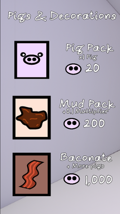 7 Put On Your Squeal Face - It's Collecting Time! 9 Pigs are for the taking! Collect them all in this little, cute/cozy tycoon game! Get Pigs, Get OINKS (Money), Repeat! Buy Mud Packs to Multiply your Earnings! Once you get enough, BACONATE your Pigs to Unlock More! Do you have what it takes? - To Complete the Collection? FIND OUT! ---------------------------------------------- Credits: Cho…