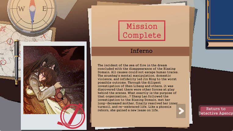 3 游戏故事: 新人侦探沈立邦,带着失踪父亲的线索,即将开启新的侦探人生,寻找父亲的下落,并揭露这个世界不为人知的黑暗。 游戏玩法: 本游戏是采用SLG战棋模式的跑团模拟游戏。 玩家通过承接委托调查案件来锻炼能力,推动剧情,收获新的调查员伙伴,组成强力侦探团队,共同探索这个世界的秘密。 游戏系统: 游戏采用多重互动方式,不仅在场景中可以自由移动,而且能与场景中的中立角色,敌方角色和道具等进行交互,从而获得各种线索推进剧情的发展。 同时,游戏采用动态数值模拟系统,通过玩家技能和当前环境等各种因素来综合计算骰数,根据骰数和对应规则来判定交互产生的结果。不同的结果将有可能导致游戏剧情走向不同的结局分支。 每一个委托案件均包含三个以上的不同结局,且可以重复挑战! 紧张刺激的场景互动 --游戏场景互动采用回合制,给予玩家充分的思考时间。同时多样的随机事件将使场景互动产生各种难…